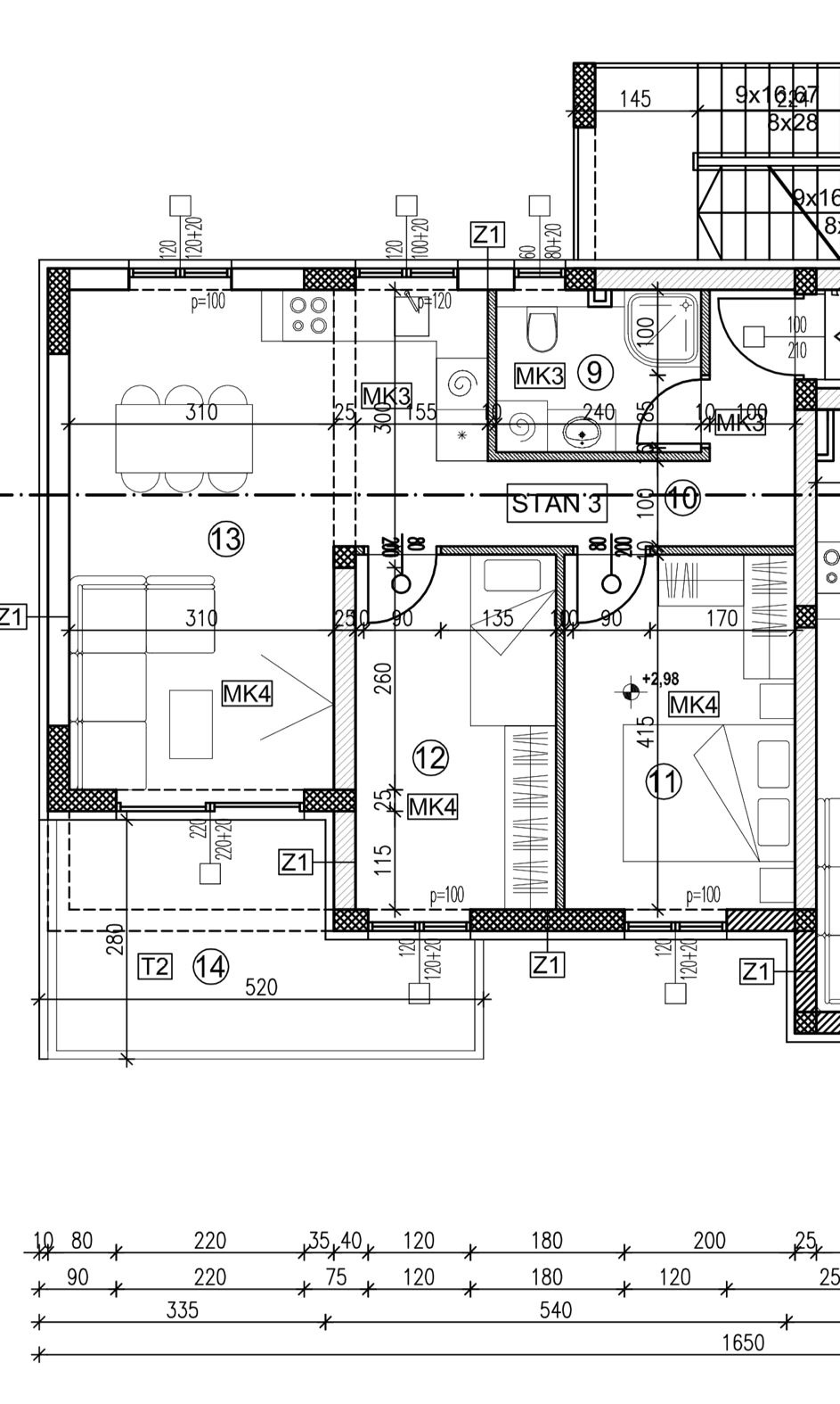 • dnevnog boravka otvorenog koncepta povezanog s kuhinjom