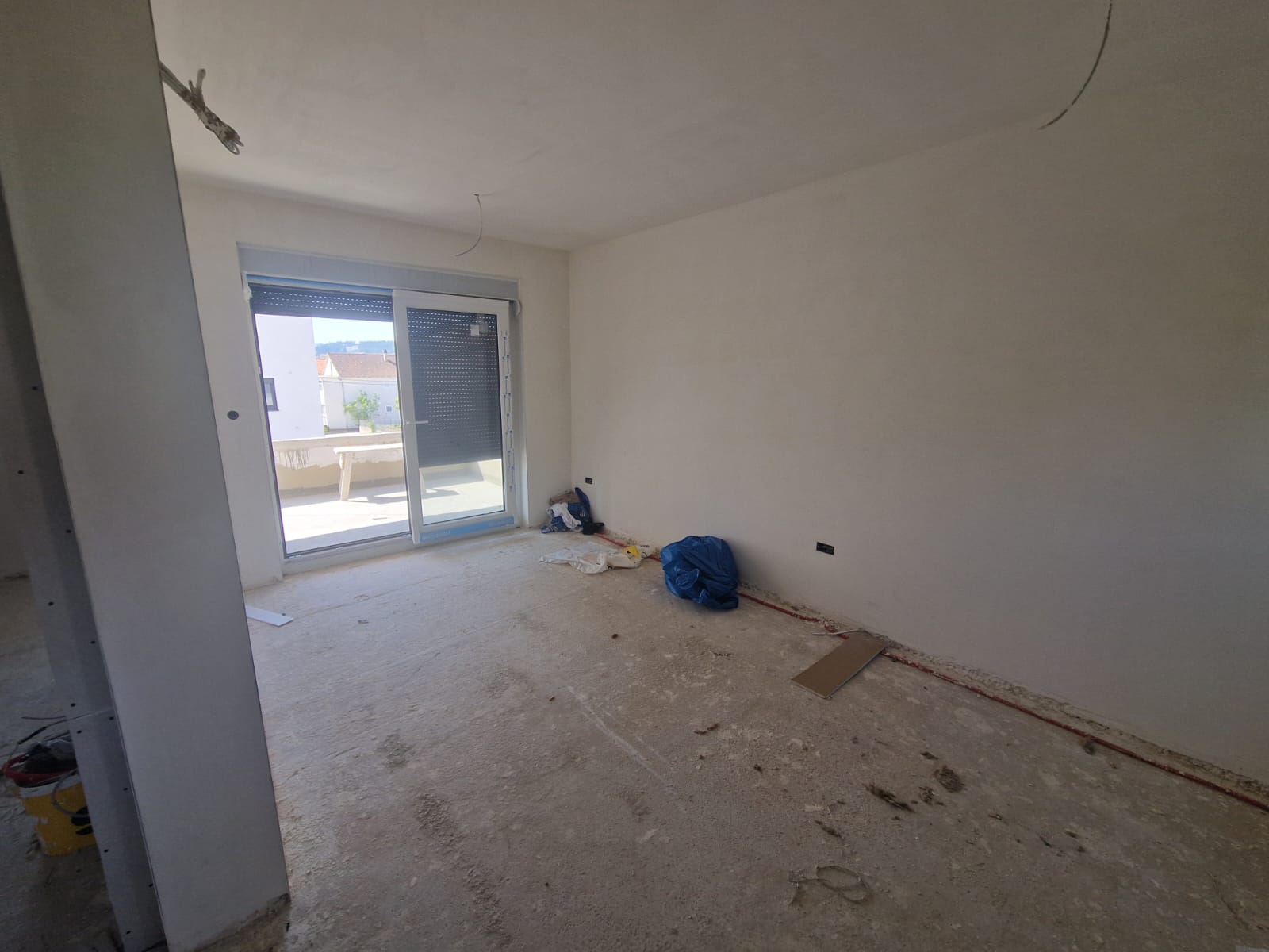 Prodaje se moderan stan površine 65 m² s dva vanjska parkirna mjesta uključena u cijenu, smješten na prvom katu kvalitetne novogradnje u Trogiru.